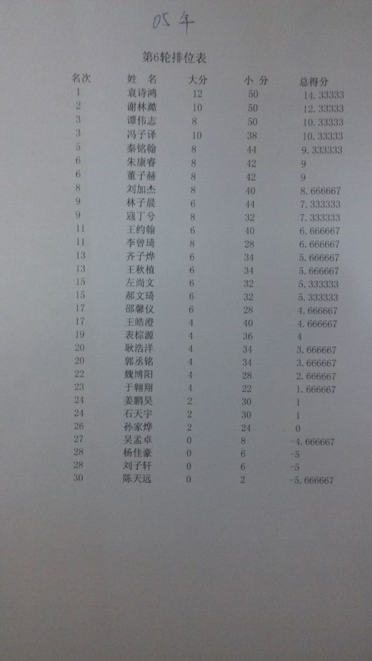 第一届清源围棋群英赛05年组成绩单