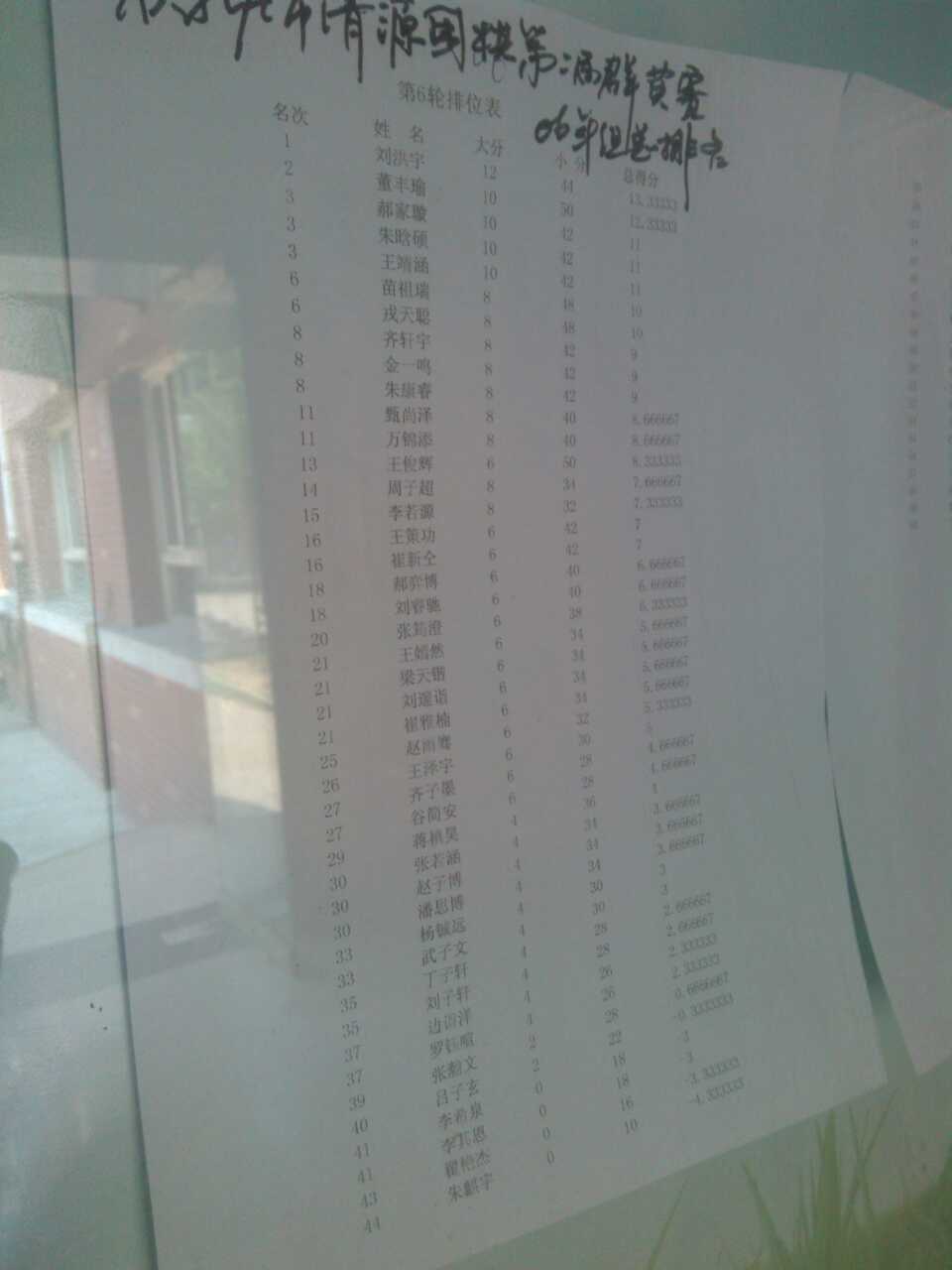 第二届清源围棋群英赛06年组成绩